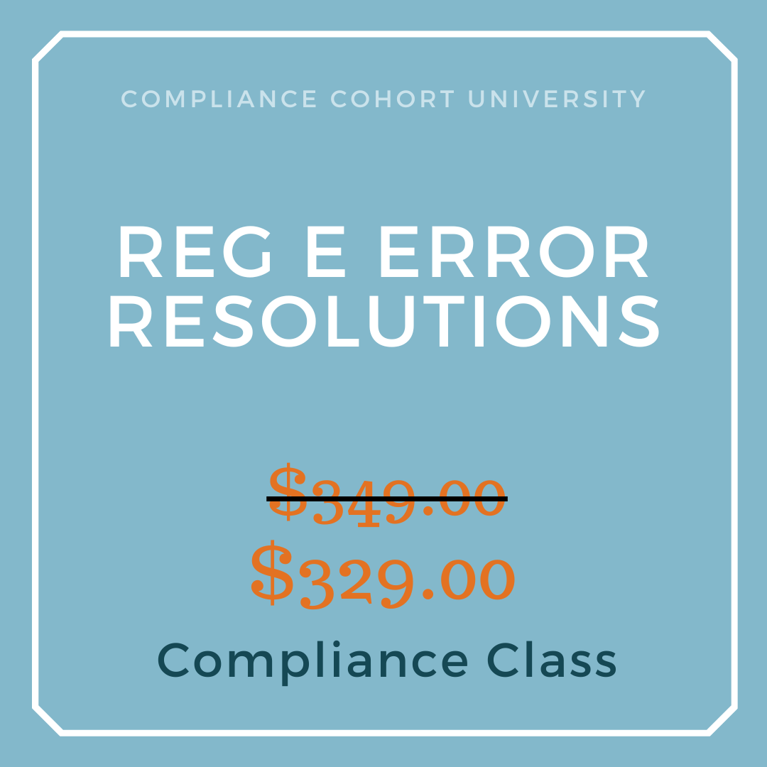 Our Regulation E Error Resolutions class is designed for those who don't need a full Regulation E class (like our Regulation E Bootcamp), but want to focus only on their responsibilities for error resolutions and consumer liability as they relate to Regulation E. In other words, this program focuses only on the error resolution and consumer liability sections of Regulation E rather than all parts of the rule.